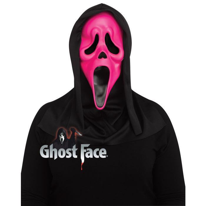Stand out this Halloween with the vibrant hot pink fluorescent ghost face mask, designed to add a bold and eerie glow to your costume.